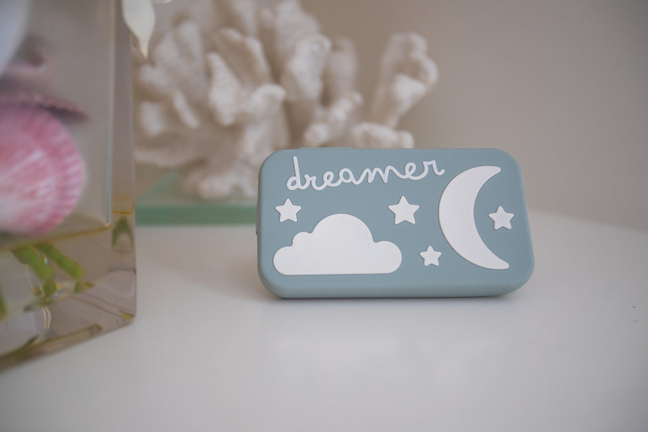 Dreamer's Silicone Strap and Magnetic Clasp make attaching to any object, and adapting any moment a breeze. Whether going for a run, a late night car ride, or a beautiful addition to the nursery, Dreamer keeps bedtime consistent no matter where life takes you.
